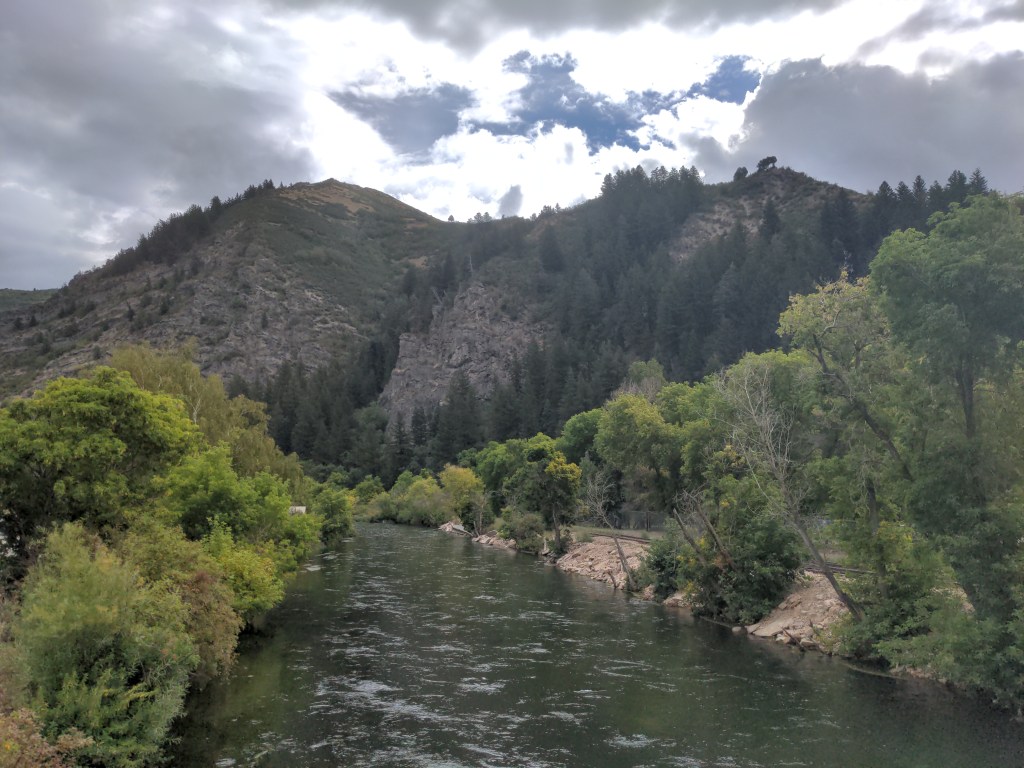 Tuesday I got a ride past the rest of the city to the start of Provo Canyon. I rode all over the city Monday, so I didn’t feel bad skipping it again. Morning ride up to Heber City, which was nice, with some light rain. I met the bike mechanic in town, and had him put on a new chain. He knows Tim Neenan, who built my bike in 1982. I wasn’t happy about the bike after the spoke replacement on Monday. Anyway, the chain helped a lot. I started my big climb for the afternoon, which is when the thunderstorm started going strong. It was tough, but I made it to the top of the pass. The campground was closed, so I got the whole thing to myself. That was nice, because it gave me a dry picnic shelter to camp in.