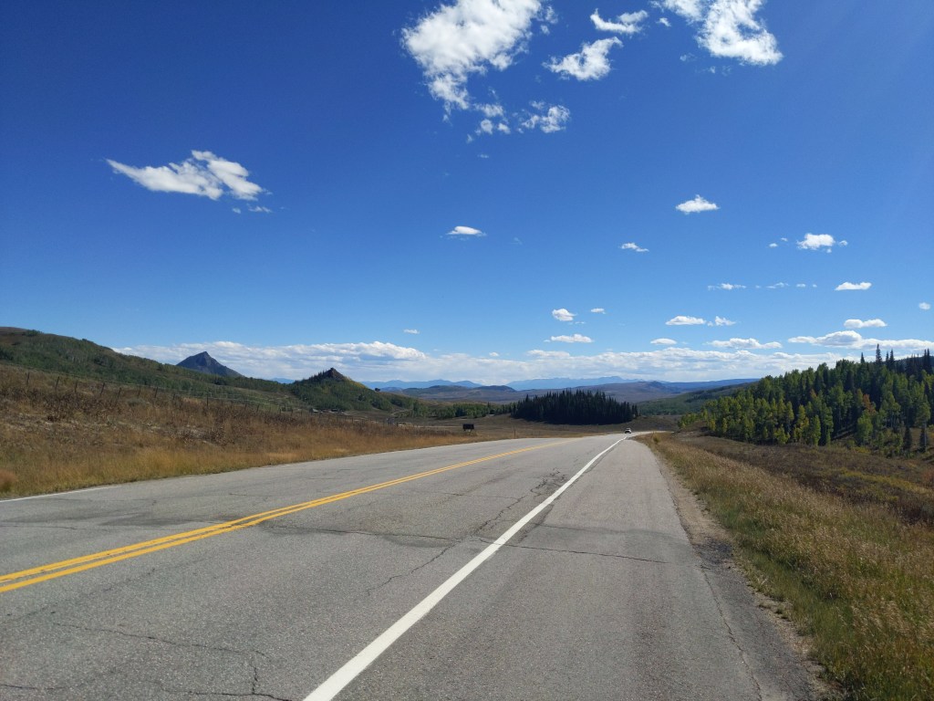 Monday I left Steamboat Springs, which was possibly the most beautiful town I’ve been to, and climbed Rabit Ears Pass, which was the hardest ride I’ve ever done. I drank all my water in the first 7 miles, and had 43 miles in the Rockies without water in my bottles. So I pulled out my lifestraw and drank lake water. That day was probably my hardest day of riding, but I made it to Kremmling, and treated myself to a brownie sunday and hot chocolate. Monday also marked my second flat tire.