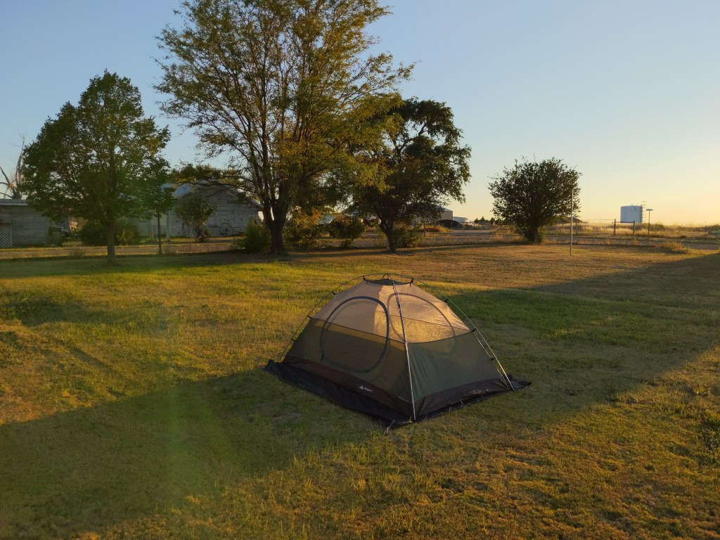 That night we camped in Cassoday, met a long distance runner / traveling pastor, and a couple of brothers riding cross country, but not quite the same route as me. I camped out with the pastor, but the other three bikers rode into town and took advantage of some generous hospitality from the residents. I got some great advice and prayer at the campfire that night.