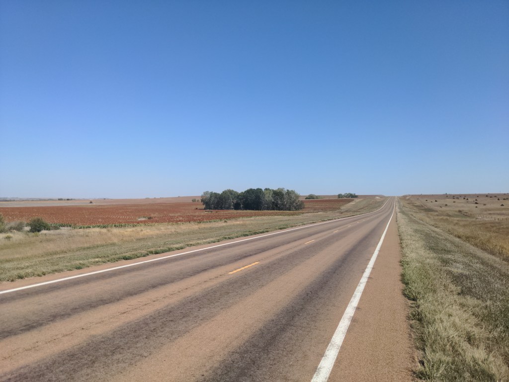 Very busy week, and I’m still pretty worn out. I’m not going to write about what I was thinking about this week, because it was pretty personal and I’ve been pretty emotionaly drained. I stopped a lot in these constant gusting headwinds to scream or cry. But I rode through. Kansas is really nice, just a bit windy.