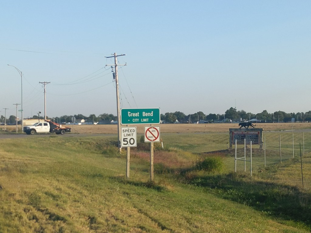 Thursday I went to Great Bend, where I had a hotel waiting for me to take a rest day. Thursday was a hard day. I could see Great Bend for hours before I could get there. Wednesday and Thursday were both days I spent in my low climbing gears because of the headwinds. But I made it.
