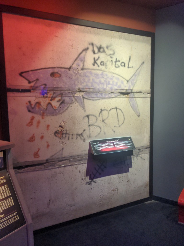 Saturday and Sunday were both shorter rides, because I only had to get to Hutchison by Sunday night to wait for my friend who is riding the train in to come ride for a week. I did get to visit the national headquarters of my old karate school, and the Cosmosphere, where I took a picture of the piece of the Berlin Wall they had.
