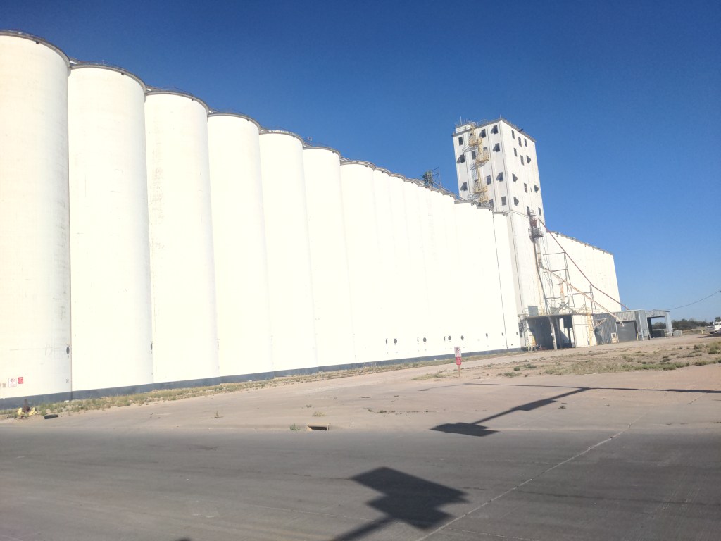 Tuesday I made it to Kansas in the morning. The only exciting part is that the road condition improved. Thus began western Kansas. From what I saw, it is farmland, mostly grain, with giant concrete grain silos by the railroad tracks every 5-10 miles. Now that I described it, you know what most of the week was like. It feels like you are on a stationary bike for days at a time. Nothing seems to move or change. Tuesday night I camped in Leoti, which was a nice town. Talked to a California transplant.