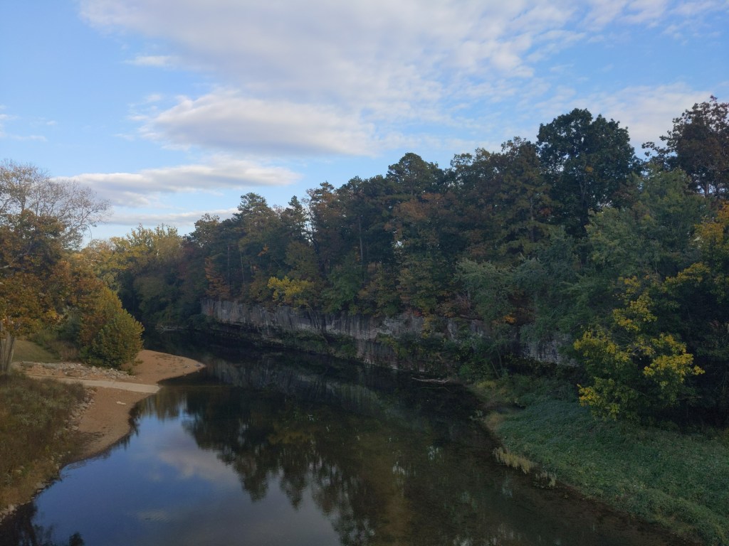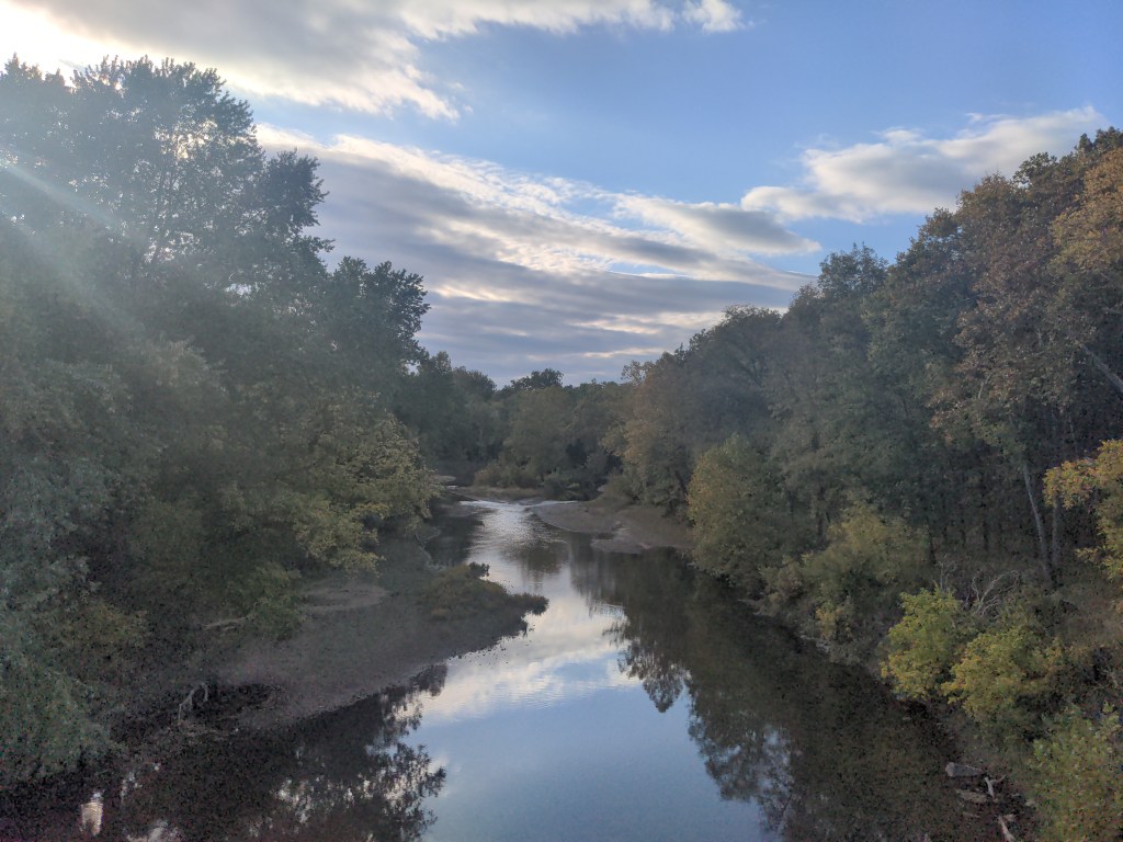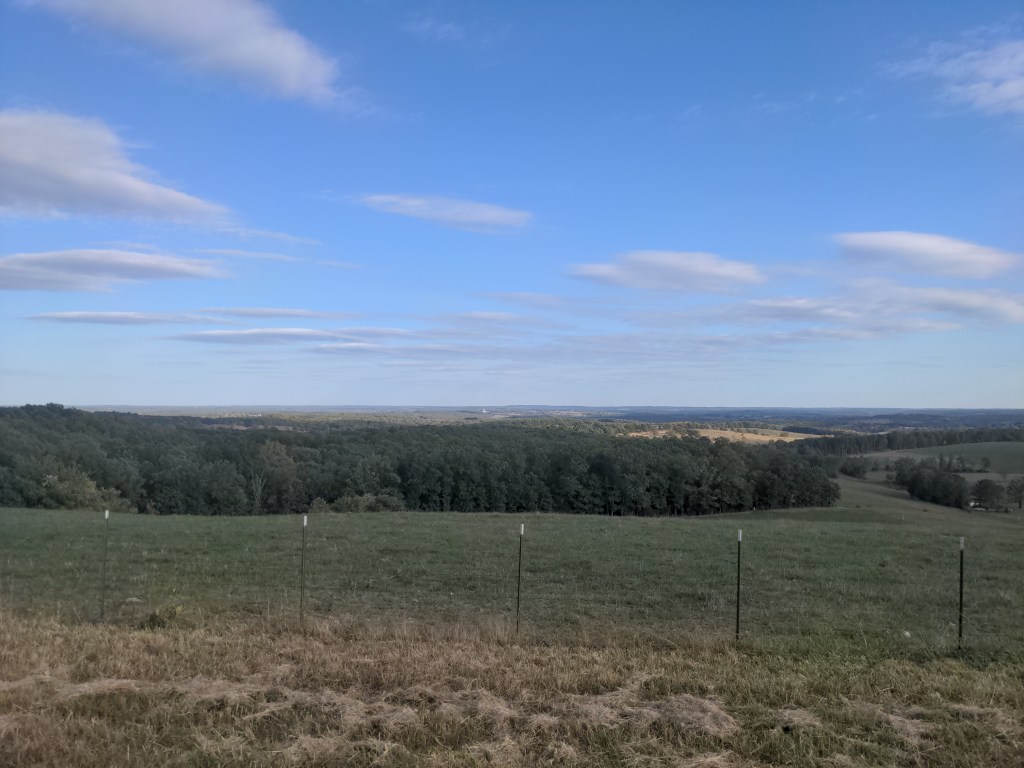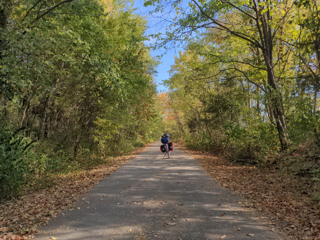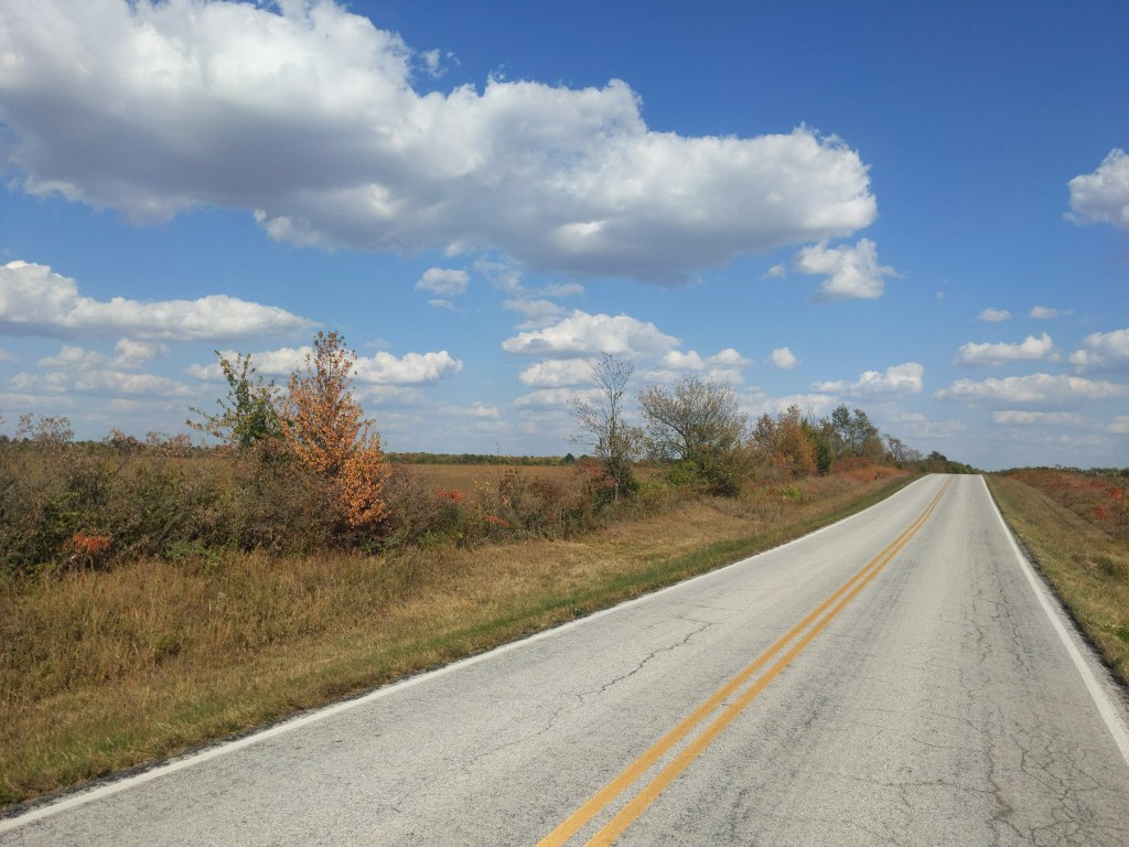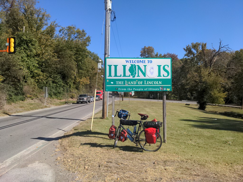 I rode through the Ozarks for the first part of the week, until they seemed to end at the Mississippi river, which was also the border to Illinois. The Ozarks were breathtakingly beautiful, with the trees changing colors, but they were brutally steep to ride. But it only lasted about 4 days, so that was nice to keep in mind. I got my first (and probably last) 100 mile day on this trip, because of a serious wrong turn. But I believe God used that wrong turn, because of an encounter I had with the manager of a dollar general I was buying a gatorade from.