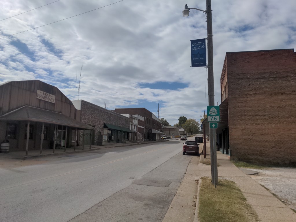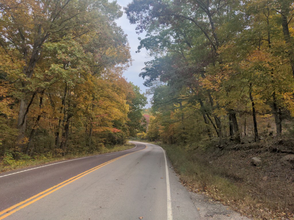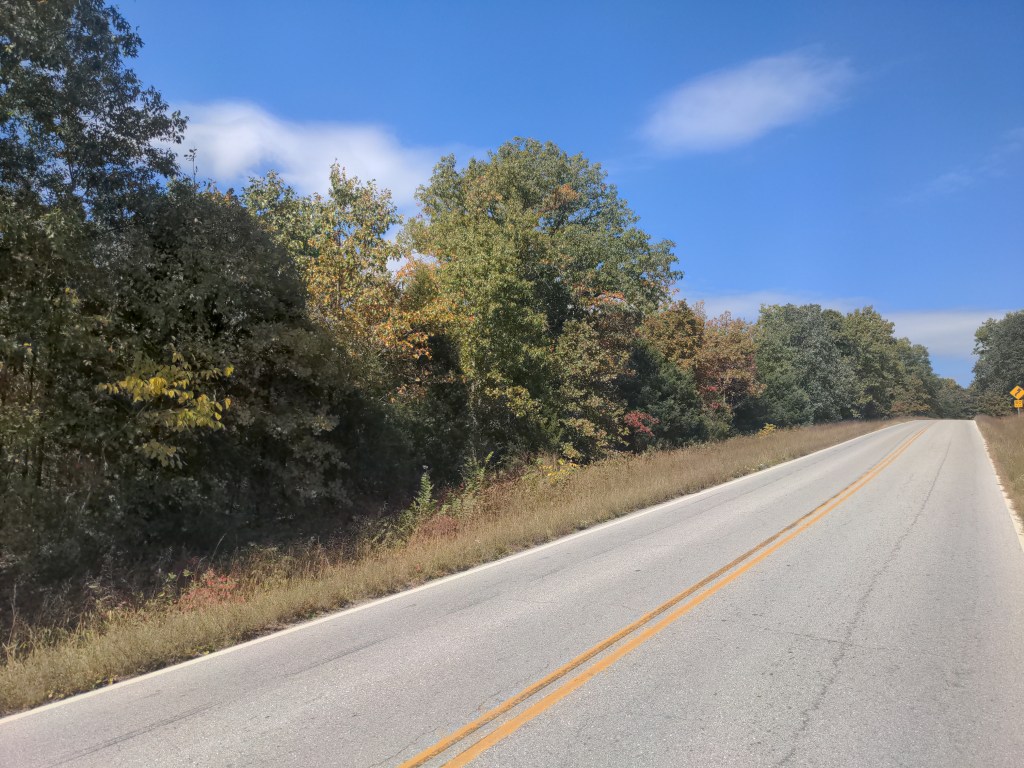 Sunday was back on the road. Missouri is beautiful, and the leaves are changing color. It’s all very mild country. No sharp changes or big contrasts. Back in the hills, but it’s nothing like riding over the rockies.