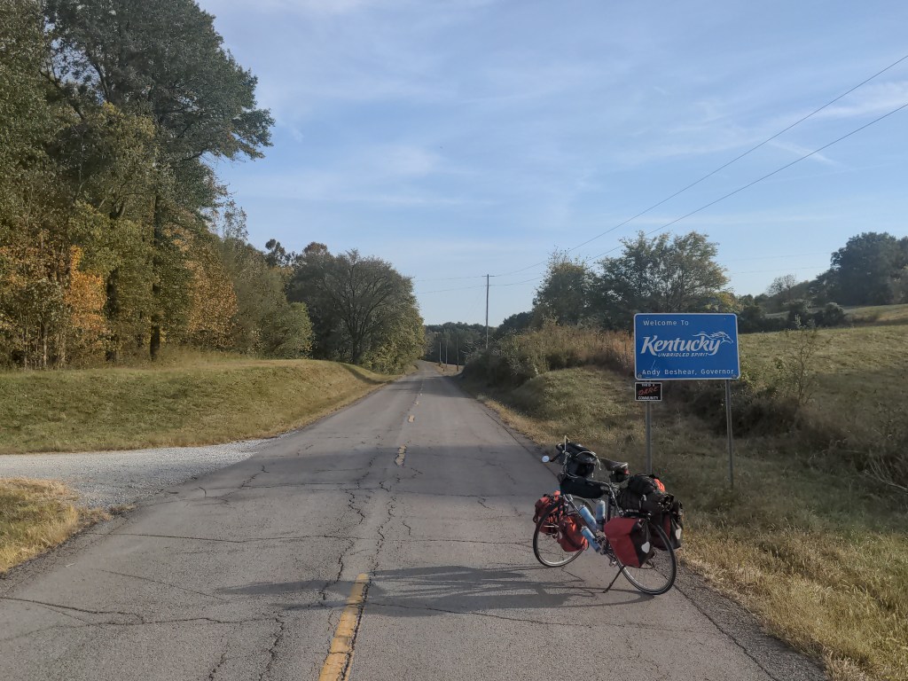 I guess I’m not making my Sunday updates very well anymore. Either way, I’m doing my best, and writing something. I only have about 2 weeks of riding to make it to the Atlantic, so there won’t be many more updates anyway. I’m cold, I’m tired, I’m sore, I’m lonely, and I’m cold. Did I say cold twice? Kentucky got hit with a cold spell, which is mostly why I didn’t write anything. Let’s try and catch things up. I went from Missouri, through th. bottom tip of Illinois, to Kentucky. These are my stops from a week ago Sunday to today (Thursday the 20th)